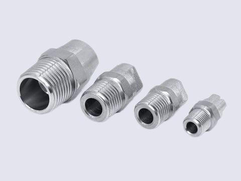 | 1/8,1/4,3/8,1/2,3/4,1,1-1/4,2 | 15° ~ 110° | BSPT/NPT | S303, S304、S316等 | 0.12 ~ 2700L/min | 全金属制的一体式结构 |